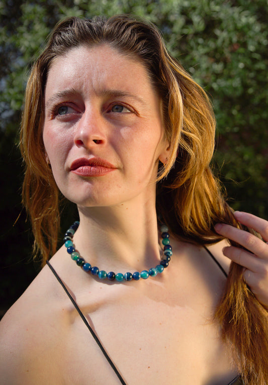 Blue Banded Agate Choker With Gold-Filled Clasp