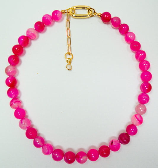 Pink Banded Agate Choker With Gold-Filled Clasp